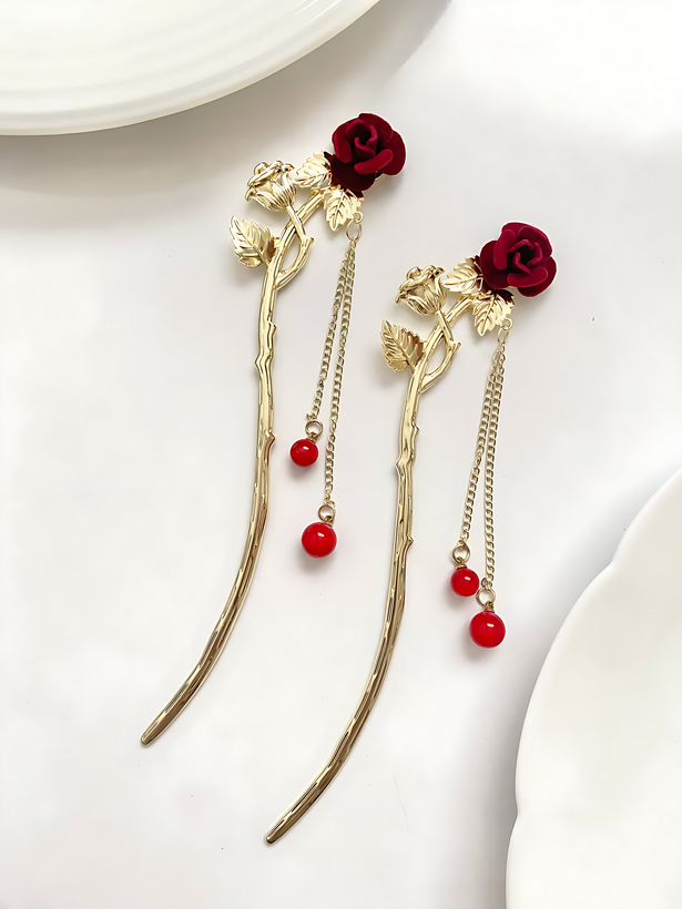 کانزاشی فلزی گل رز ریز خمیده آویز دار